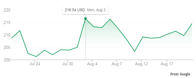 참고로 마이크로소프트의 틱톡 인수 협상 발표 후 주가는 잠깐 상승하였지만, 등락을 반복하고 있습니다.
