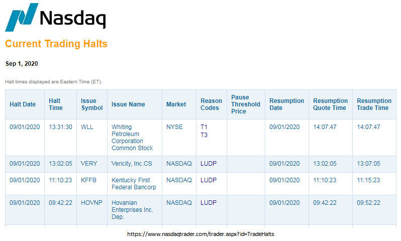 정보의 동등한 보급과 해당 정보에 기반한 공정 거래를 촉진하기 위해 거래소는 정보가 공개되기 전에 일시적으로 거래를 중단하기로 결정할 수 있습니다. 거래 중단에 해당되는 뉴스는 회사의 재무 안정성과 관련된 변경, 구조 조정 또는 합병과 같은 중요한 거래, 리콜과 같은 회사의 제품과 관련된 공개 발표, 고위 경영진에 대한 인사 변경 또는 회사의 사업 수행 능력에 영향을 미치는 규제 또는 법적 발표를 포함할 수 있습니다.
