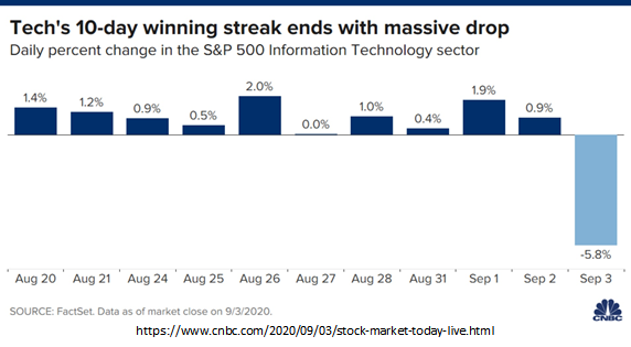 참고로 Tech 주식은 지난 10일간 상승장으로 유지하다가 오늘 급락을 하였습니다.