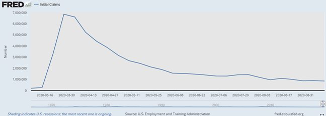 투자자가 관심을 갖는 대표적인 선행 지표는 실업 보험금 신청 (jobless claims) 건수입니다.