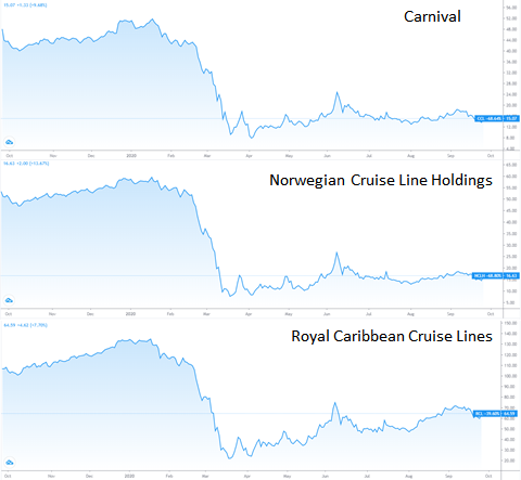 크루즈 산업은 팬데믹 이후 모든 크루즈가 취소된 후 주가는 폭락하였고 그 여파에서 벗어나지 못하고 있습니다.