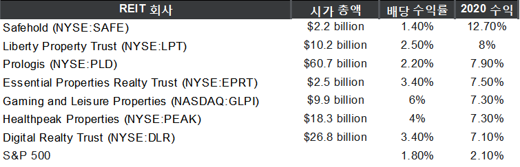 2020년에 좋은 성과를 낸 REIT 주식