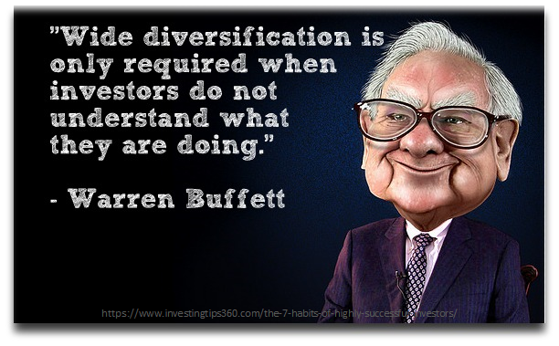 워렌 버핏은 투자의 다양화는 무지에 대한 보호이고 투자자 자신이 무얼 하고 있는지 안다면 다양화는 의미가 없다고 말했습니다.