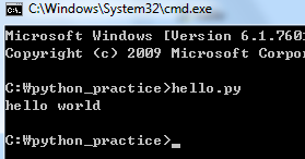 도스창에서 hello.py를 입력하시고 실행하면 hello world가 프린트됩니다.