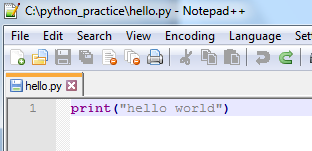 Notepad ++에서 다음 파이썬 코드를 저장합니다. 파일을 저장할 때 폴더를 지정하고 hello.py라는 이름으로 저장합니다.