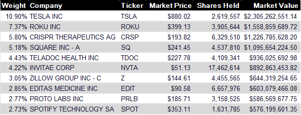 2020년 ETF 성과 순위 리스트를 보면 Ark Invest에서 운용하는 ETF들이 좋은 성과를 보여줬다는 것을 알 수 있습니다. (지난 포스팅 참조하세요. 2020 YTD ETF 수익률 랭킹)