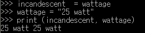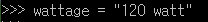 객체 “120 watt”를 wattage변수에 지정하려고 합니다. 코딩 내에서 wattage 변수를 사용할 수 있습니다.