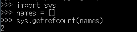 파이썬에서 변수를 생성할 때마다 reference count 증가합니다. 만약 reference count가 0이 되면 메모리에서 변수가 지워졌다는 의미입니다.