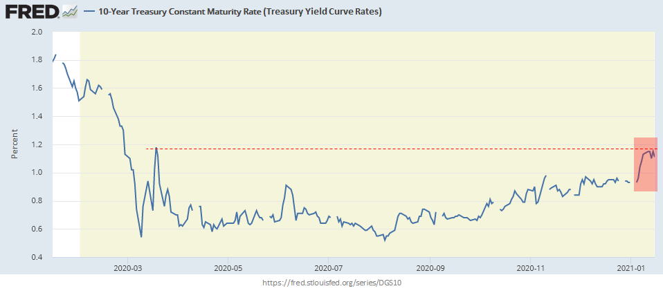 새해가 되어서 10 년 만기 국채 수익률이 급격히 상승했으며 국채 수익률의 급격한 상승은 주식 시장에 좋지 않은 소식이라는 뉴스들을 많이 접하게 되었습니다.