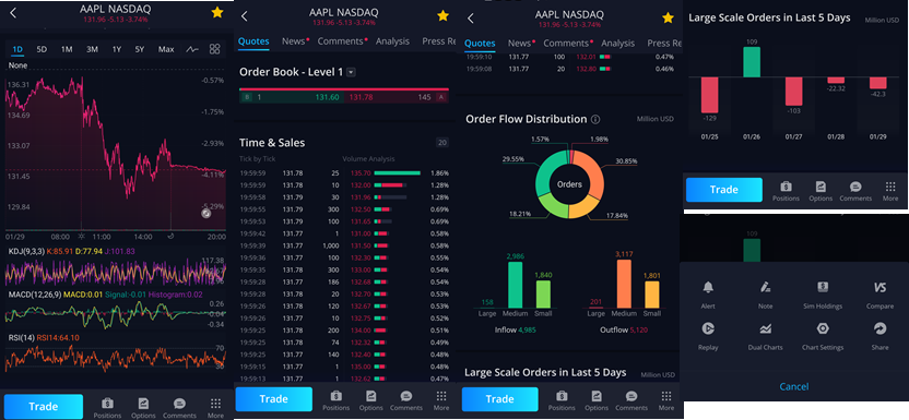 기본적인 차트와 인디케이터, 다른 종목과 비교 가능, 관련 뉴스 등을 제공합니다.