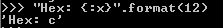 "Hex: {:x}".format(12)