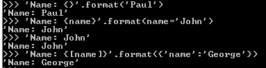 'Name: {[name]}'.format({'name':'George'})