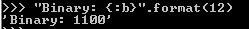 "Binary: {:b}".format(12)