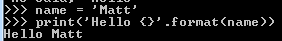 print('Hello {}'.format(name))