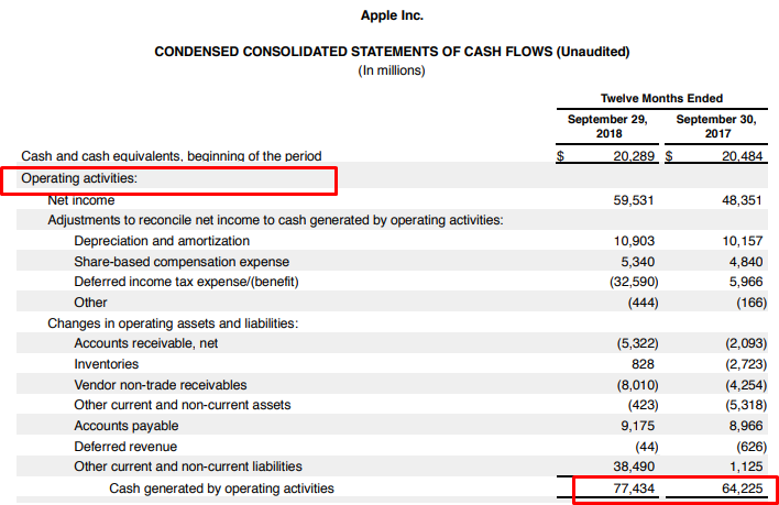 오늘도 Apple의 과거 현금 흐름표를 참고하여 현금 흐름표의 주요 구성 요소들을 정리해 보겠습니다.