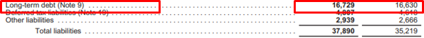 장기 부채 (Long-term Debt) = $16,729
