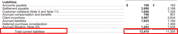 유동 부채 (Current Liabilities)= $13,415