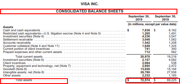 다음은 Visa의 대차 대조표입니다.