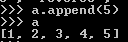 append라는 방법을 사용하여 a list에 숫자 5를 포함시켜보겠습니다.