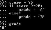 if 조건문은 score가 90 이상이면 grade는 A 그렇지 않으면 (90보다 작으면) grade는 B로 정의됩니다.