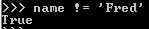 name이 Fred가 아니다를 확인하는 예로 위의 예에서 name은 Matt이므로 결과 값은 참입니다.