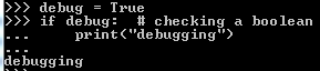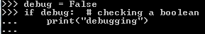 if debug: # checking a Boolean