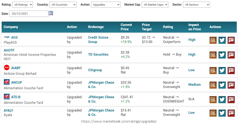 개인적으로 자주 사용하는 웹사이트는 benzinga와 MarketBeat입니다. 두 개의 웹사이트는 비슷한 포맷을 가지고 있습니다.