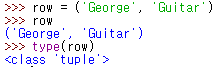 위에서 정의된 row와 row2의 타입을 보면 tuple이라는 것을 확인할 수 있습니다.