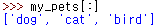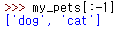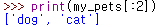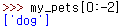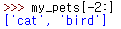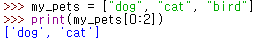 my_pets 리스트에서 0:2를 사용하여 처음 2개의 아이템을 출력합니다.