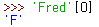 'Fred' string의 첫 번째 인덱스는 'F'입니다.