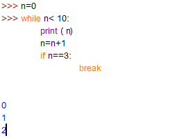- if 문의 조건문에서 n=3이 true이면 break 명령어를 실행하여 while loop가 종료됩니다.