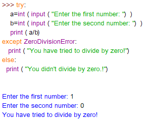 1/0으로 "You have tried to divide by zero!"을 출력합니다.