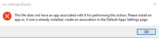This file does not have an app associated with it for performing this action. Please install an app or, if one is already installed, create an associateion in the Default Apps Settings page.