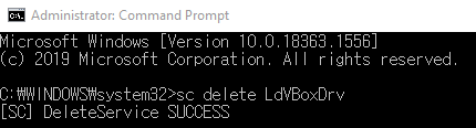 해당 파일을 지우는 명령어는 sc delete LdVBoxDrv 입니다.