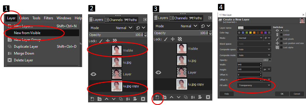메뉴바에서 New from Visible을 선택해서 새로운 레이어를 만들어 줍니다. 첫 번째 레이어에 Visible 레이어가 생성됩니다.
