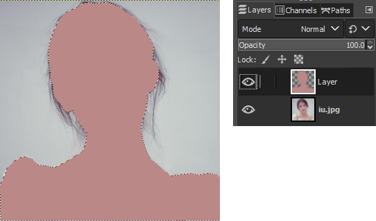 Path tool로 얼굴 전체 외곽라인을 그려줍니다. 그림 위에서 마우스 오른쪽 클릭을 하고 Select -> From Path로 그려준 외곽 라인을 선택합니다.