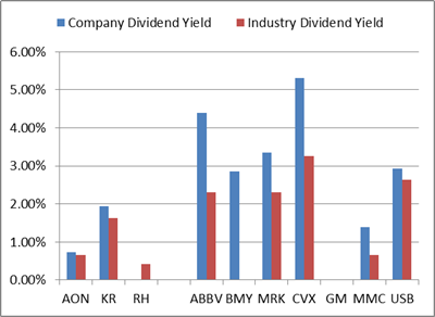 모든 회사 (RH 제외)가 동종 업계의 평균 Dividend Yield보다 높음