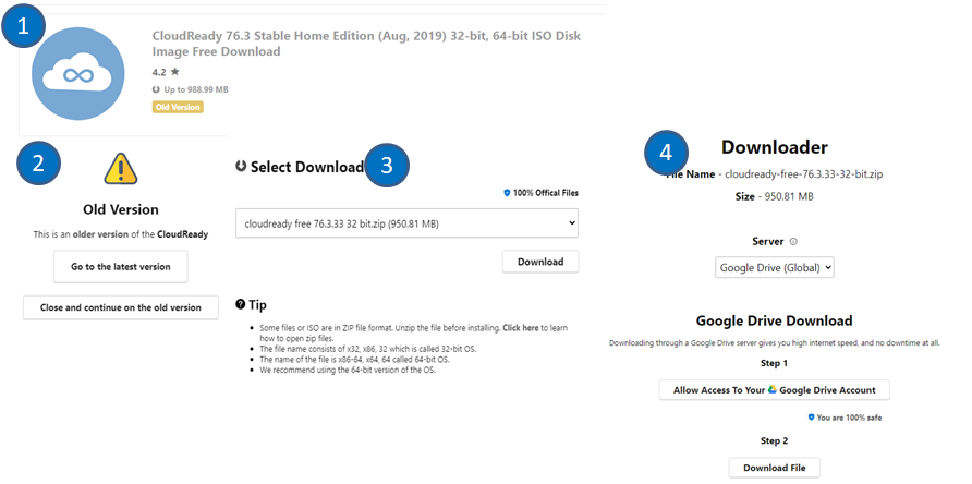 다운로드 중에 새로운 사실을 알게 되었습니다. 제가 가지고 있는 랩탑은 너무 오래되어서 32bit 기반인데 현재 다운로드 중인 CloudyReady는 64bit만 지원해준다는 사실입니다.