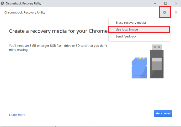 USB 드라이브 (8GB 이상)를 연결하고 구글 크롬 브라우저를 열고 위에서 설치하였던 크롬북 복구 유틸리티를 실행합니다.