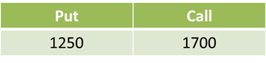 Put/Call 비율은 1,250 / 1,700 = 0.7353입니다.