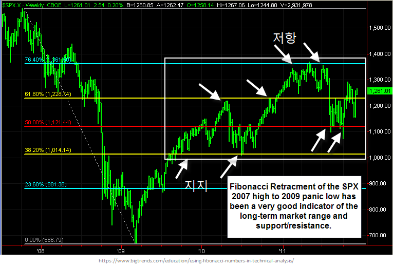 주가는 상승과 하락을 되풀이하는 되돌림 현상이 일어나므로 피보나치수열은 기술 분석에서 가격의 특정 패턴을 통해 목표 가격을 예측하는 데 사용되고 있으며, 또한 위험 관리에 사용할 수 있는 지지 및 저항 수준을 공식화하는 데 필요한 정보를 제공합니다.