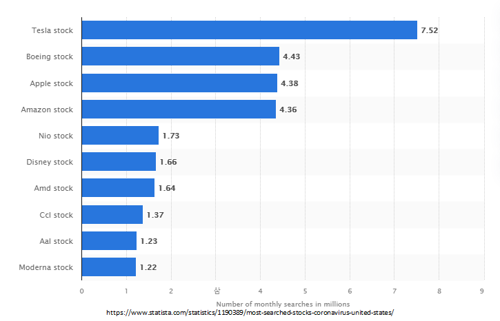2020년 8월 기준으로 구글에서 많이 검색된 주식들