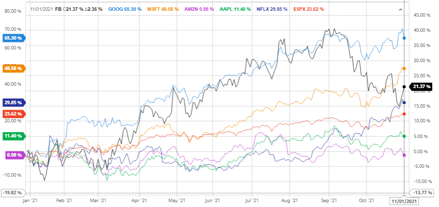 Google, Microsoft가 상당히 좋은 수익률을 보여주고 있으며, Netflix도 S&P 500 지수보다 높은 괜찮은 수익률을 보여주고 있습니다.