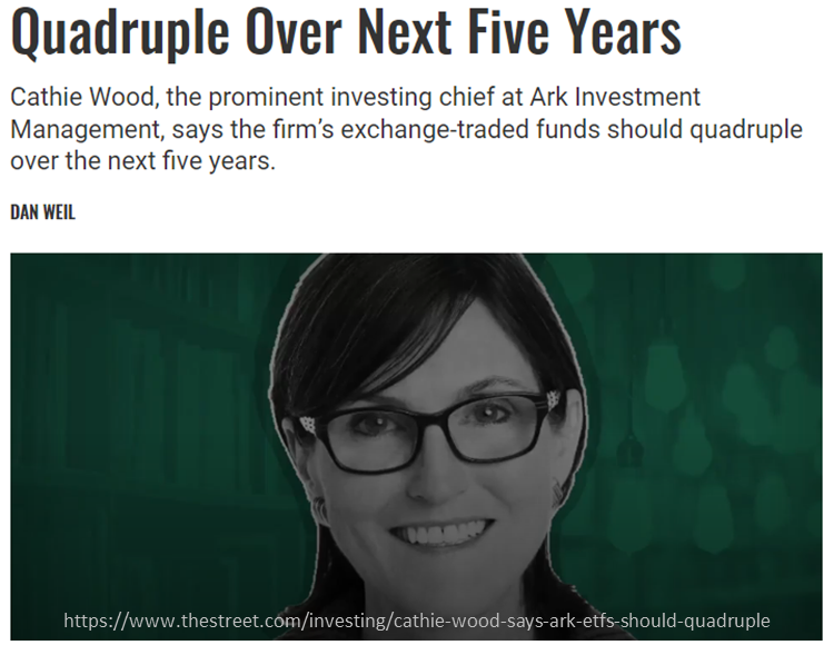 현재 가치 평가가 아닌 펀더멘털을 기반으로 하는 추정을 통해 Ark Investment ETF의 포트폴리오는 향후 5년 동안 4배가 될 거라는 엄청난 자신감을 보여줬습니다.
