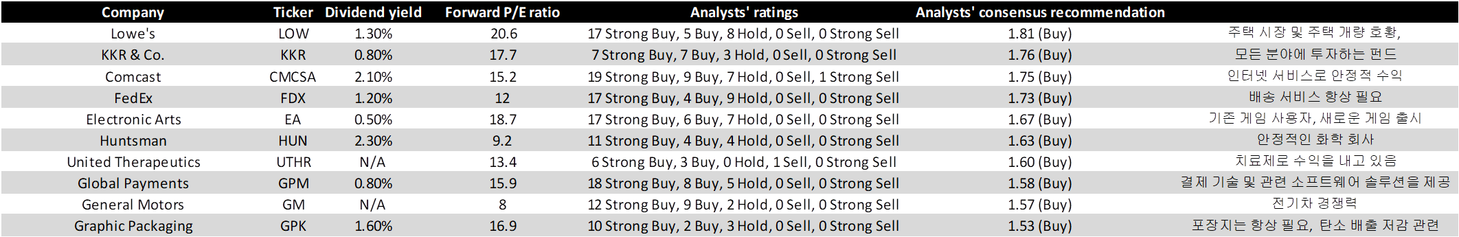 위의 추천주들은 참고용으로 사용하시고 관심 있으신 분들은 반드시 자세한 분석을 통해 결정하시길 당부드립니다.