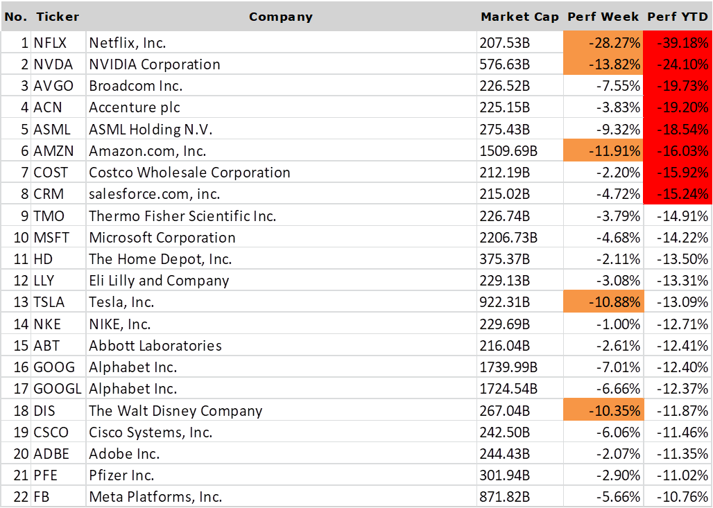 Netflix와 NVIDIA는 25% 이상 하락하였습니다.