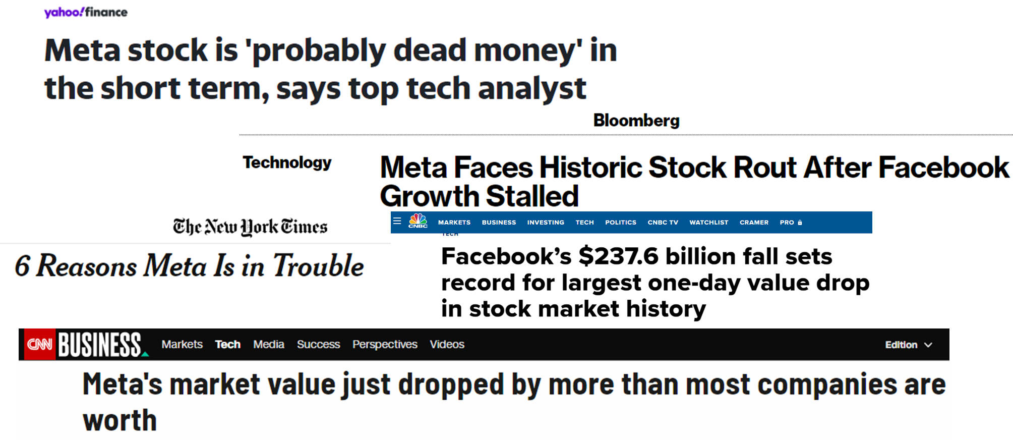 Facebook의 어닝 쇼크에 대한 기사들이 넘쳐나고 있습니다.