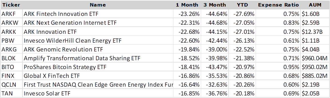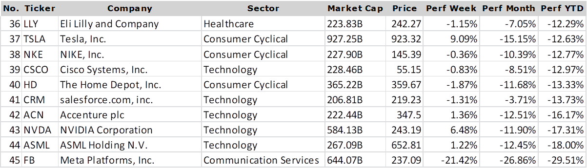 하위 10개 종목에 Technology 관련 섹터들이 다수 포함되어 있습니다.