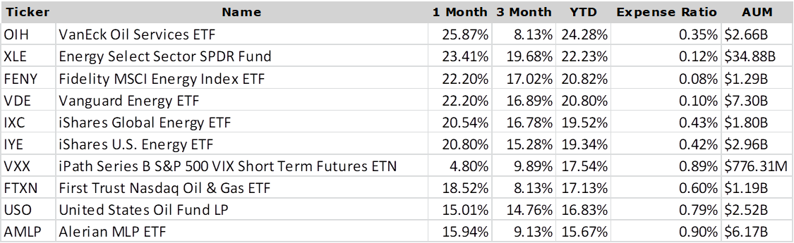 에너지 관련 ETF가 상위 10개 종목 중 9개입니다.