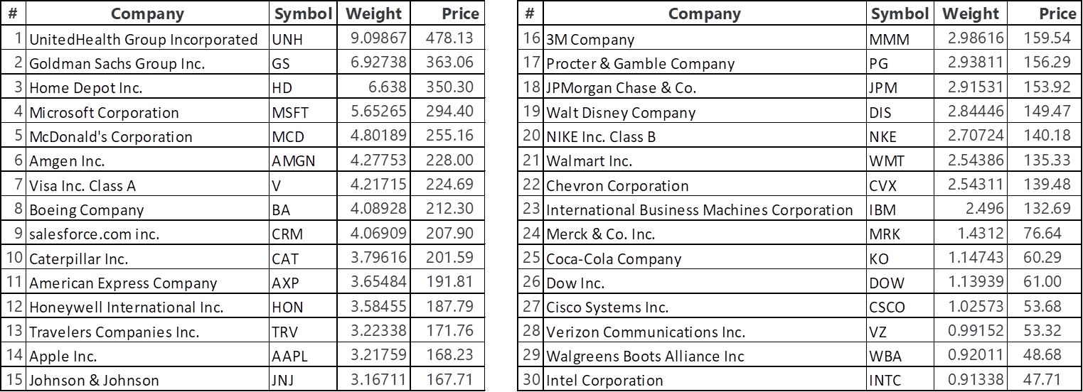 다우존스 산업평균지수 (Dow Jones Industrial Average (DJIA))의 경우